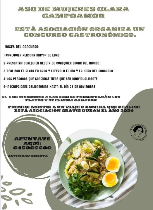 Por ese motivo la Asociación de Mujeres Clara Campoamor ha preparado un concurso de platos típicos de navidad, de cualquier punto de España o del MundoHay que inscribirse desde ahora hasta el día 28 de noviembre, las bases son: