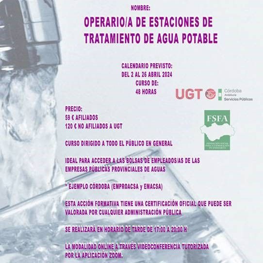 Curso Online Operario/a de estaciones de tratamiento de agua potable