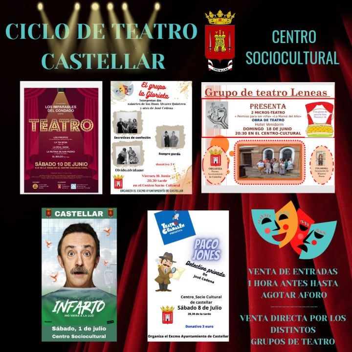 Dentro del Ciclo de Teatro de Castellar, el próximo domingo, 18 de Junio, el "Grupo de Teatro Leneas" presentará 2 micro teatros "permiso para ser niño" y "La mamá del año" y la obra de teatro "Hotel Venidorm", en el Centro Sociocultural Castellar Ibero, a partir de las 20,30 horas
