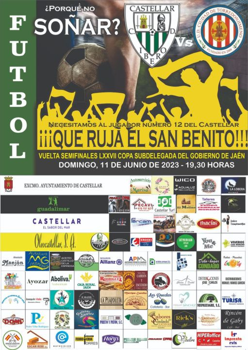 No me cabe duda de que mañana lo daréis todo, y que como bien me dijo ayer vuestro capitán "se va a intentar"... Hacerlo como vosotros sabéis, jugando en equipo, que realmente es lo que os hace fuertes. Disfrutar de cada balón, de cada ocasión lograda y también, porque no, de cada ocasión fallida, para que os haga más fuertes de cara a la próxima que ha de venir. Ser fuertes ante las adversidades, que de seguro vendrán porque el Torredonjimeno es un gran equipo y hay que tenerle respeto, pero sobre todo ser vosotros mismos.